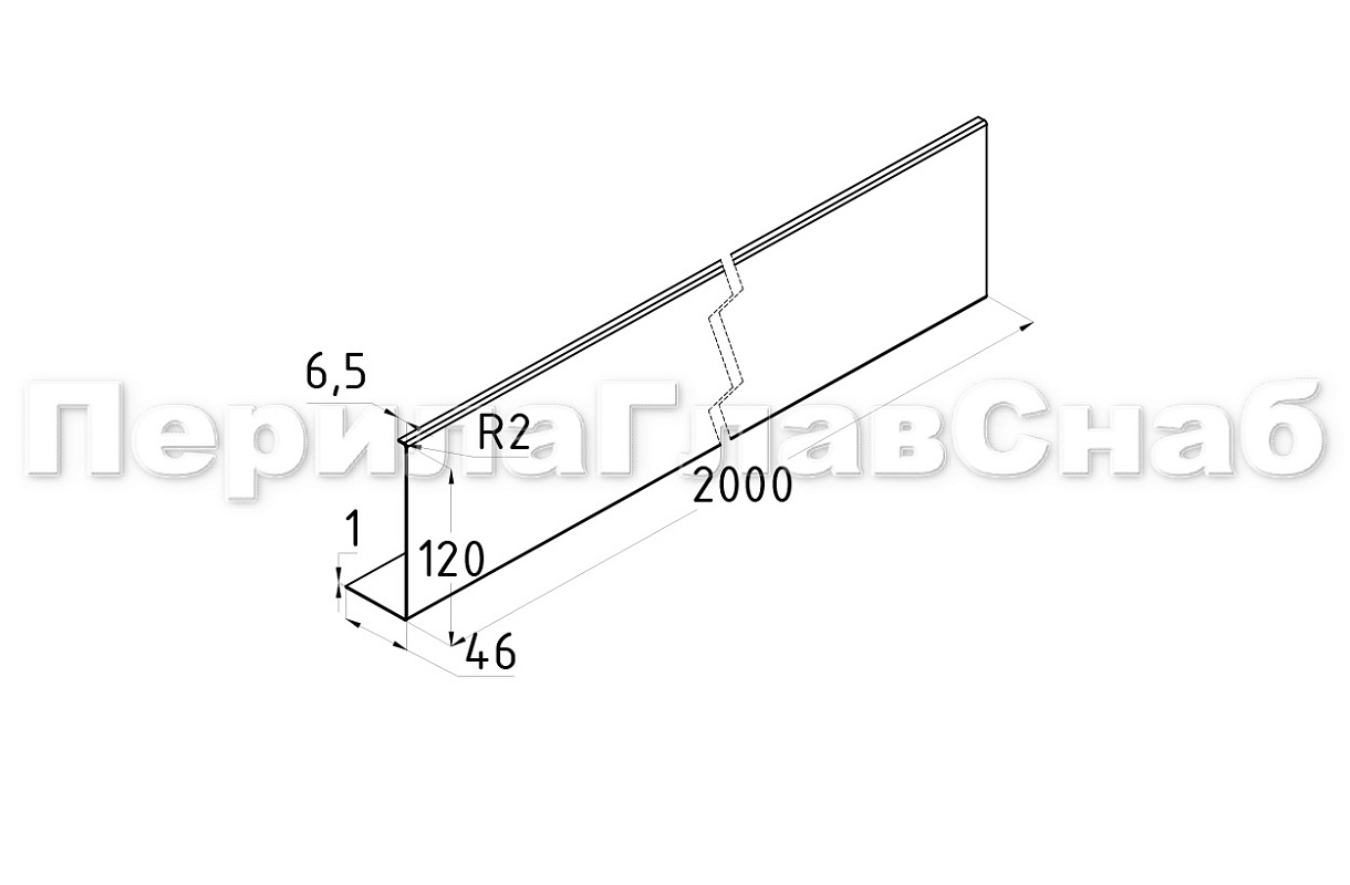 П-образный профиль 40 мм верхний, алюминиевый анодированный, длина 3000 мм т24 AL