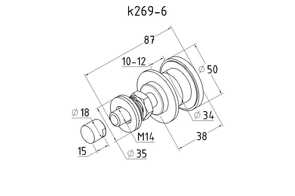 под стекло от 10 до 26 мм (отверстие 40 мм) шаг резьбы шпильки М14 рутеля - 1,5мм