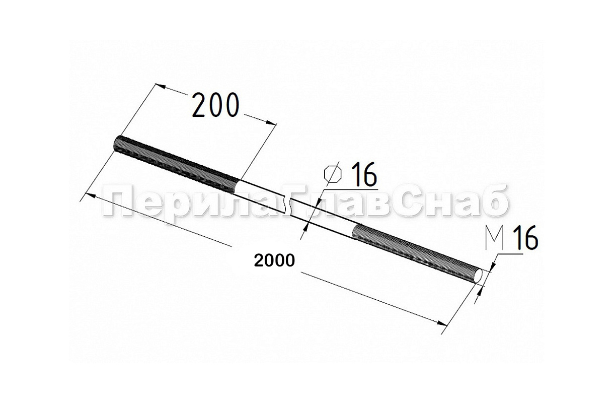 Вант (тяга) для козырька М16, длина - 2000 мм. Шаг резьбы - 2 мм, левая/правая - 195 мм с каждой стороны. Марка стали - AISI 304