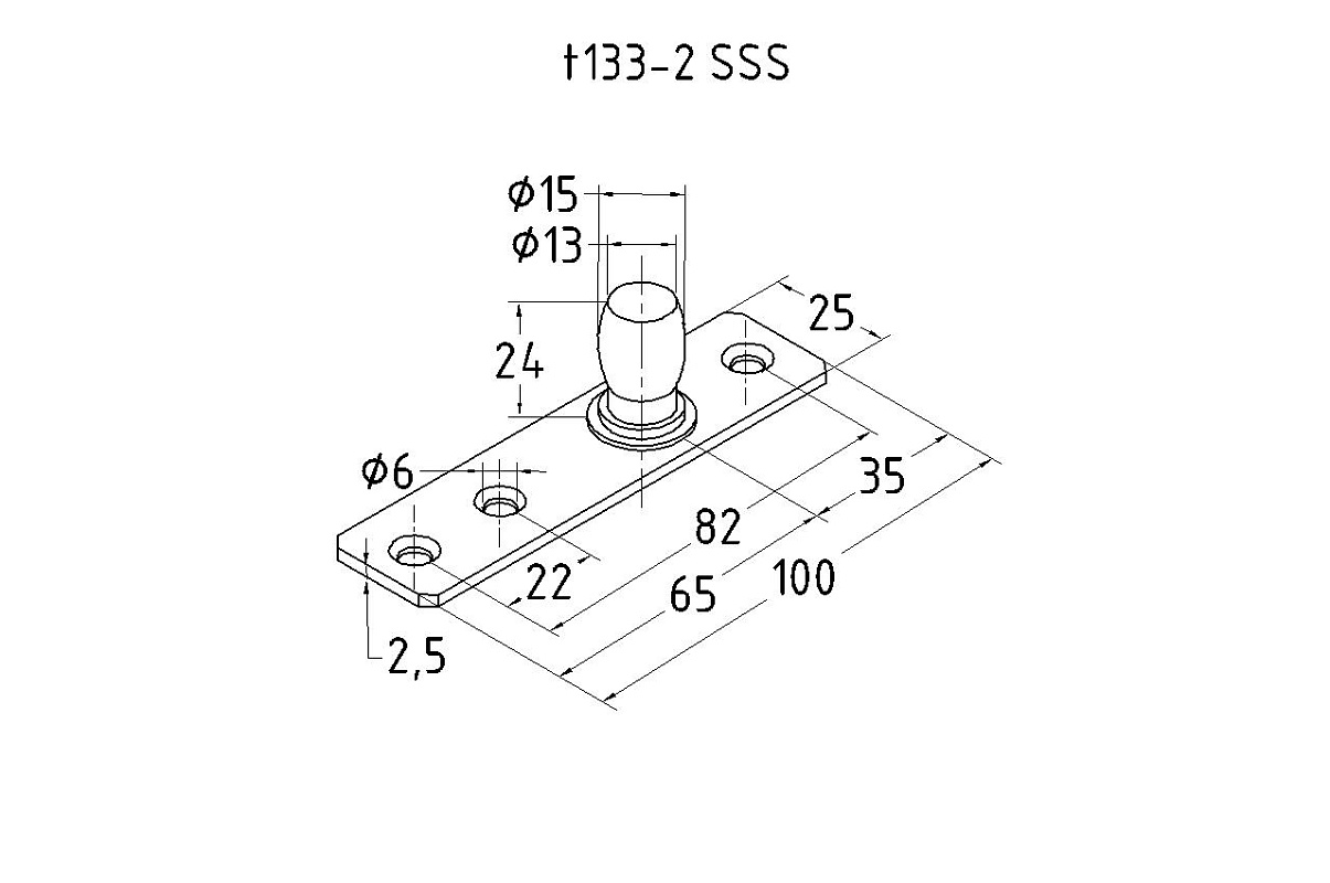 Ось верхняя, шлифованная, марка стали- AISI 304. Представляет собой верхнюю ось для стеклянной маятниковой двери без фрамуги.