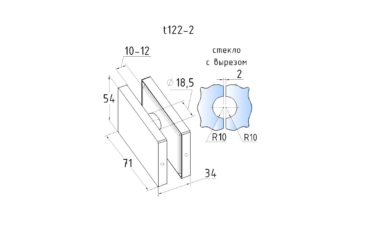 Коннектор стекло-стекло на две панели 50х70, шлиф t122-2 SSS