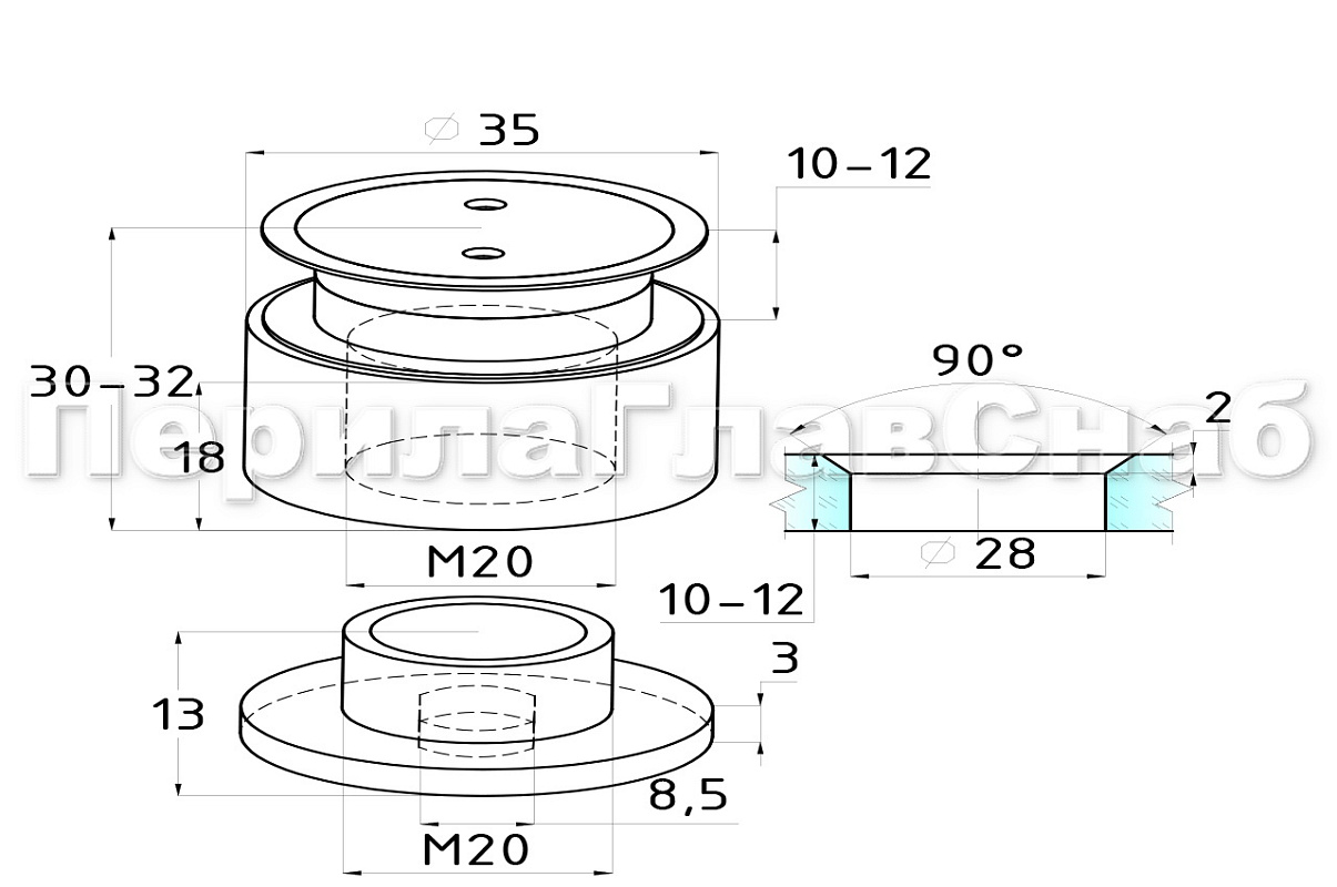 Точечное крепление 22-26 мм, регулируемое, с зенковкой, шлифованное. Для стекла толщиной 10-12 мм