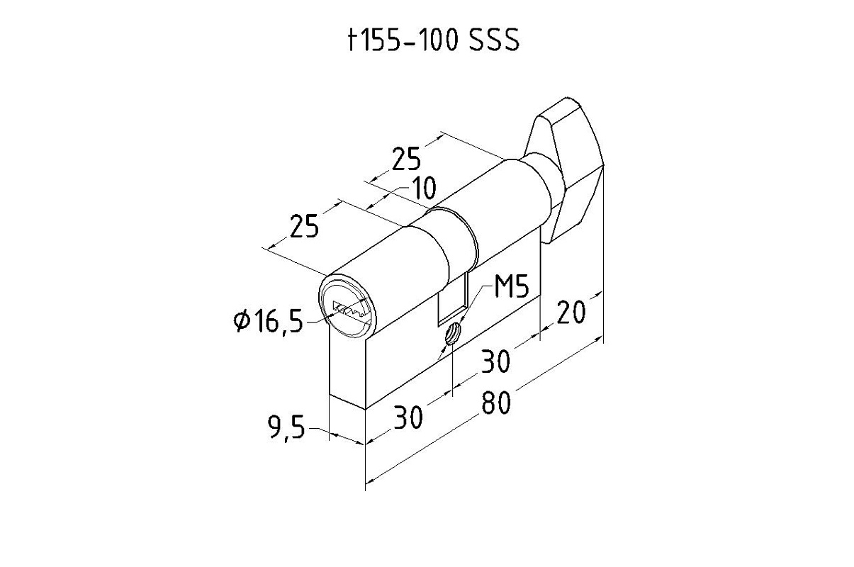 Личинка латунная 30х30 мм для замка t155 ключ-вертушка t155-100 SSS