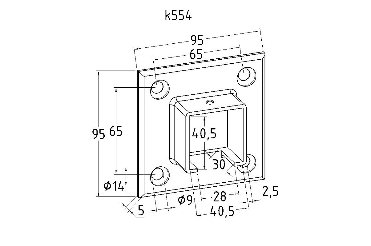 Фланец для поручня с пазом 40х40 мм, полированный, (AISI 304)