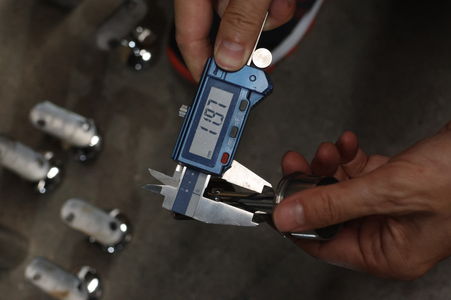 Наконечник палец с регулируемым ложементом под поручень Ø38.1-42.4 мм, на стойку Ø38.1х1.5 мм, литой, полированный, нержавеющий (AISI 304) k006-7