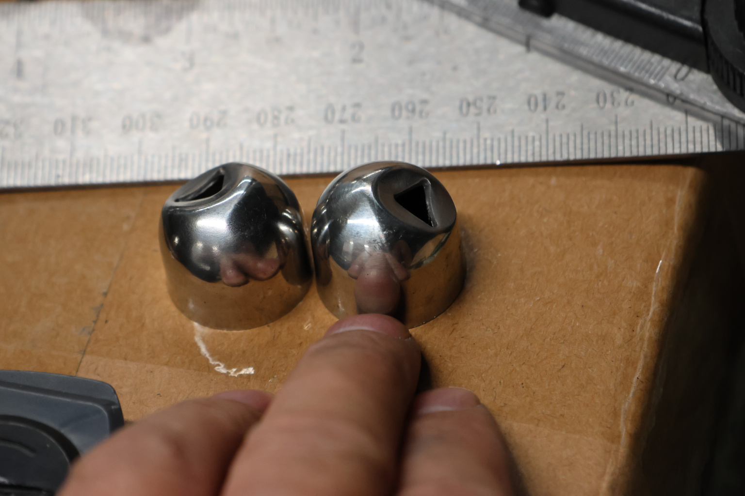Наконечник палец (солдатик) на стойку из профильной трубы 40х40х1.5 мм, сварной, усеченный, облегченный, полированный, нержавеющий AISI 304 k285-999