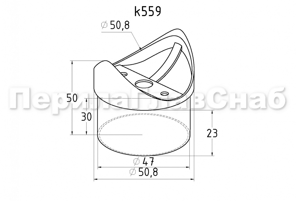 Наконечник седловина прямая 90° на стойку Ø50.8 мм, под поручень Ø50.8 мм, литая, полированная, AISI 304, k559