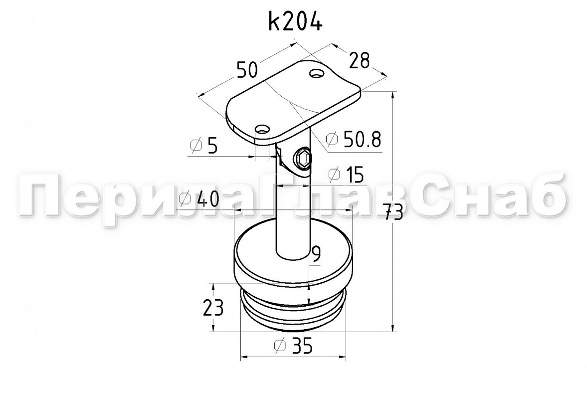 Наконечник-"палец" с алюминиевой системой фиксации на стойке Ø38.1х1.5 мм. Ложемент под поручень Ø50.8 мм, регулируемый. Деталь полированная, литая, нержавеющая. Марка стали - AISI 304
