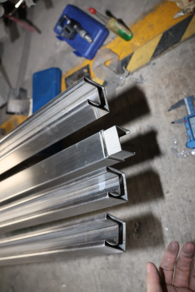 Труба 40х40 мм с пазом 24 х 24 под стекло, AISI 304 шлифованная k856-2