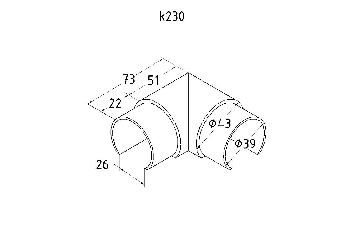 k229 - соединитель для трубы Ø42.4 мм с пазом 24х24 мм под стекло;