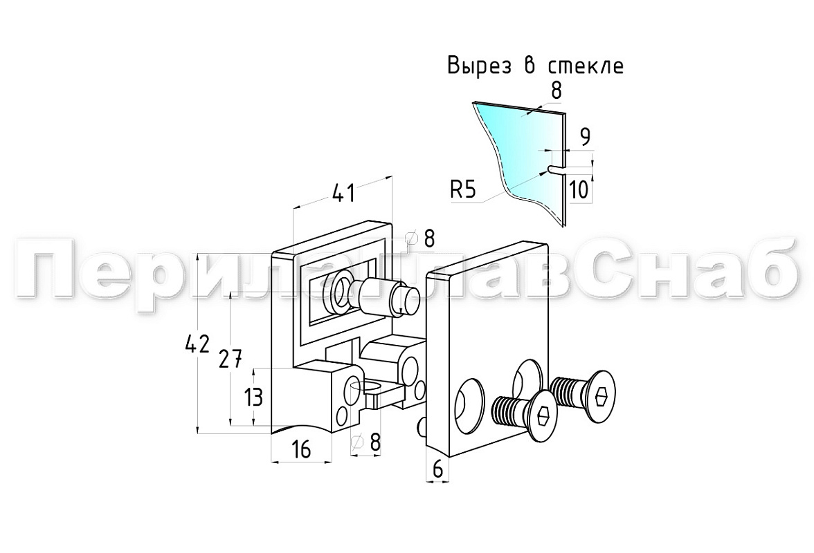 Устанавливается на стойку Ø38.1 мм самосборного или сварного ограждения. Стеклодержатель подготовлен для зажима стекла толщиной 8-10 мм и для триплекса 4+4 мм. В комплект входят дополнительные вставки под стекло 8 мм, 4+4 мм. Если у вас стекло толщиной 10 мм, то  дополнительные вставки не используют. Также в комплект входит стеклоуловитель для стекла, данный стеклоуловитель, при монтаже можно не использовать. По умолчанию, литой стеклодержатель рассчитан на нагрузку до 40 кг, стекло со временем не поползет. Если вам необходимо увеличить нагрузку на стеклодержатель  до 50 кг, то в таком случае, используют стеклоуловитель и в стекле согласно чертежу, делают отверстие. Данный стеклодержатель используют  под стойку Ø38.1 мм, но если вы хотите  использовать его под трубу Ø50.8 мм, то под заказ на нашем производстве его изготовят, цену и сроки уточняйте у менеджера.