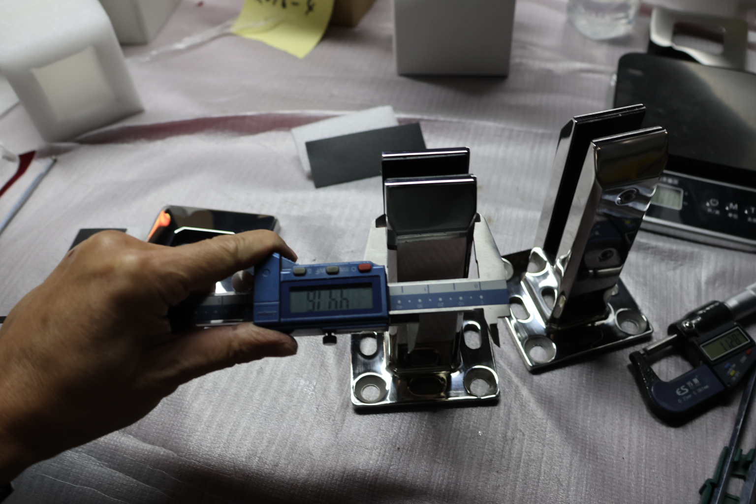 Стеклодержатель напольный 45х50х160 мм, для стекла 10-12 мм, литой, плоский, без сверления, нержавеющая сталь AISI 304, полированная k275-5