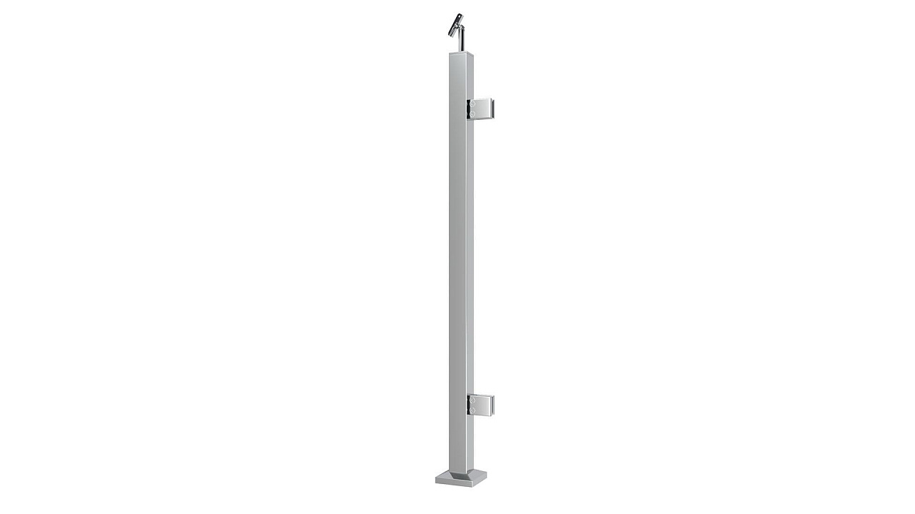 Cтойка квадратная 40х40: 2 литых квадратных стеклодержателя, полированная, высота 950 мм (aisi 304)
