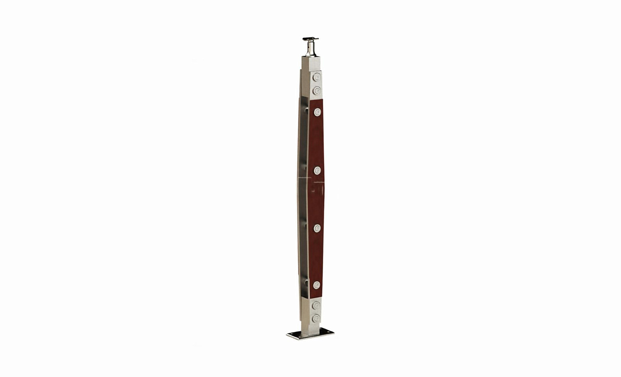 Готовая стойка Ø38,1х950 мм деревянная, со вставками из нержавеющей стали 2х100 мм с 2 стеклодержателями k741-2-R купить в Казани