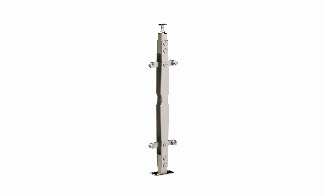 Стойка квадратная 40х40: 4 литых стеклодержателя, полированная, высота 950 мм (AISI 304) k746 купить в Казани