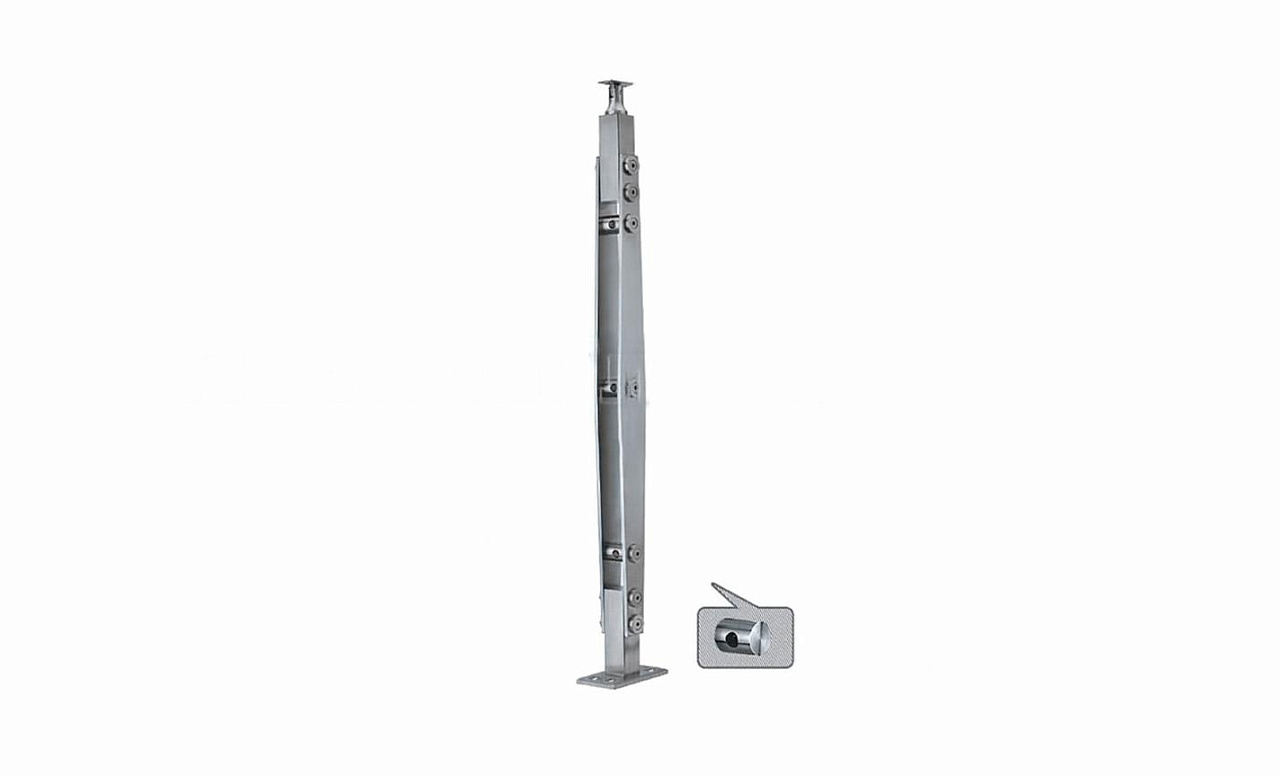 Стойка квадратная 40х40: 4 литых стеклодержателя, полированная, высота 950 мм (AISI 304) k746 купить в Казани