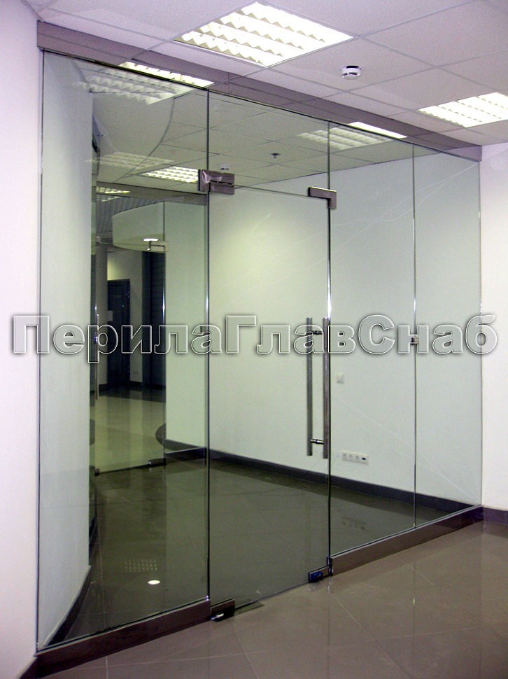 Кроме того, на том же объекте специально для заказчика были разработаны и установлены системы цельностеклянных офисных перегородок, витрины и стеклянных дверей на профильной фурнитуре типа «Классика».