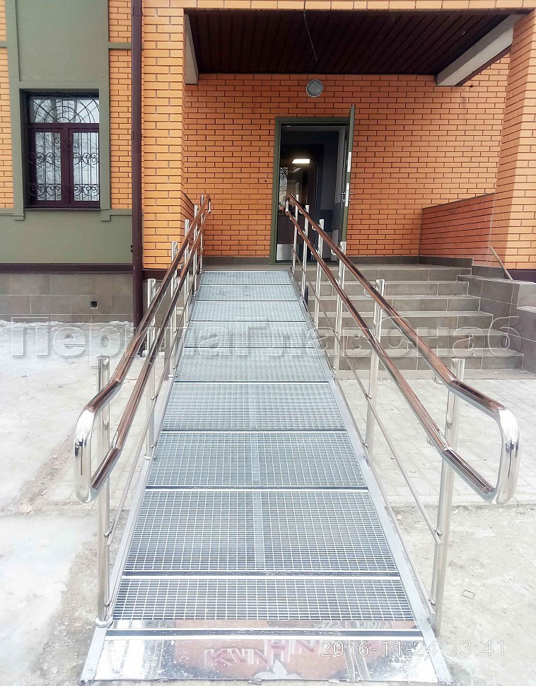 Нержавеющее ограждение пандуса на металлической платформе для людей с ограниченными возможностями