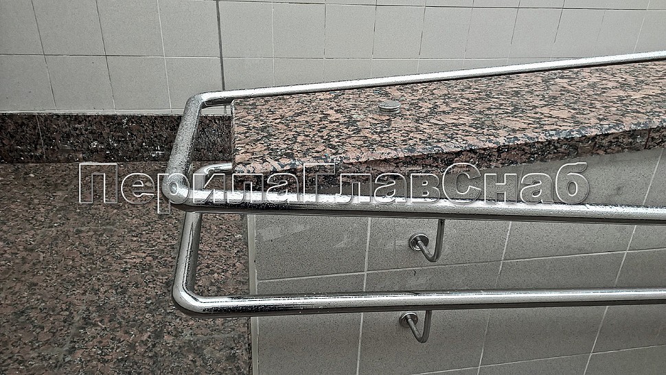 Пристенки зафиксированы на специальных выносных держателях, зазор между стеной и поручнем идеально подходит для непрерывного скольжении руки.