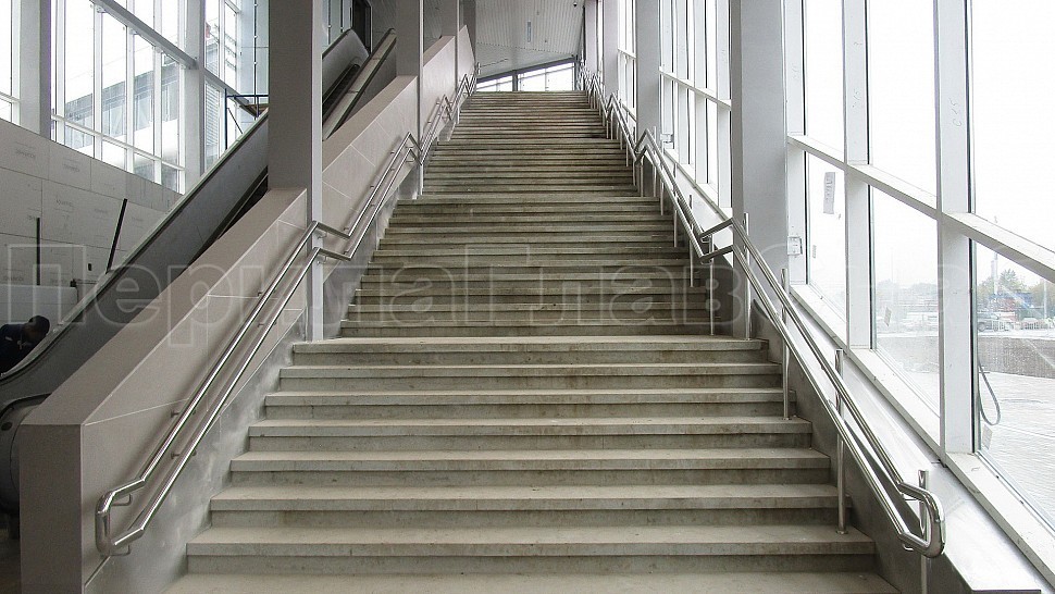 Для станции “Волгоградская” были спроектированы и установлены наружные ограждения высотой 900мм из прозрачного стекла триплекс 8+8мм, с поручнем диаметром 50мм из полированной нержавеющей стали с креплением к стеклу на выносном элементе. Стекло крепится сверху при помощи зажимного алюминиевого профиля. Крепление нержавеющих элементов ограждения между собой выполнено при помощи аргонно-дуговой сварки, длина швов — 2мм, с последующей зачисткой и полировкой.