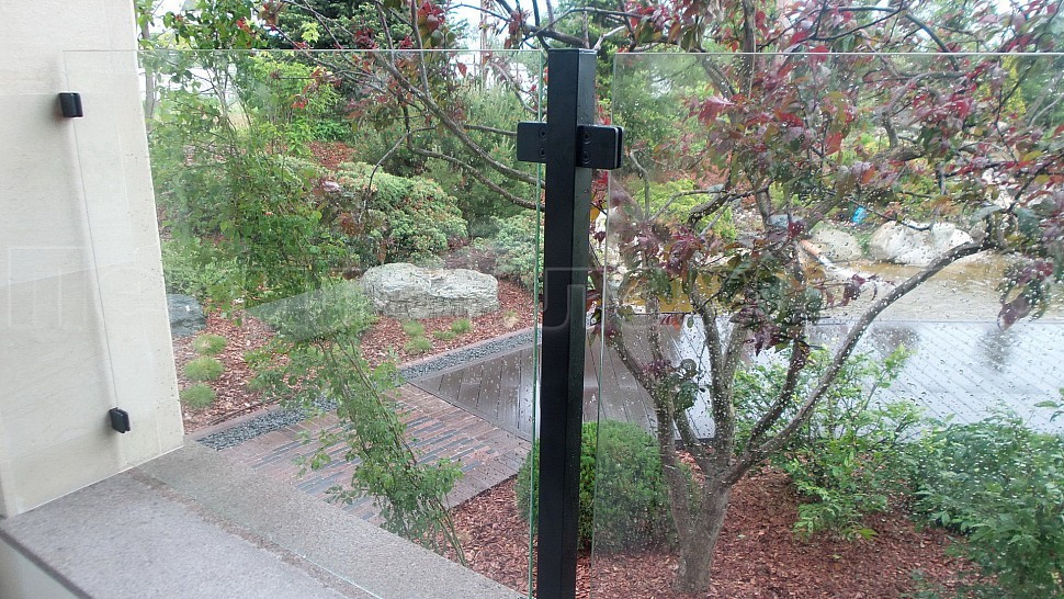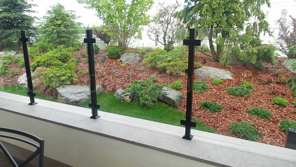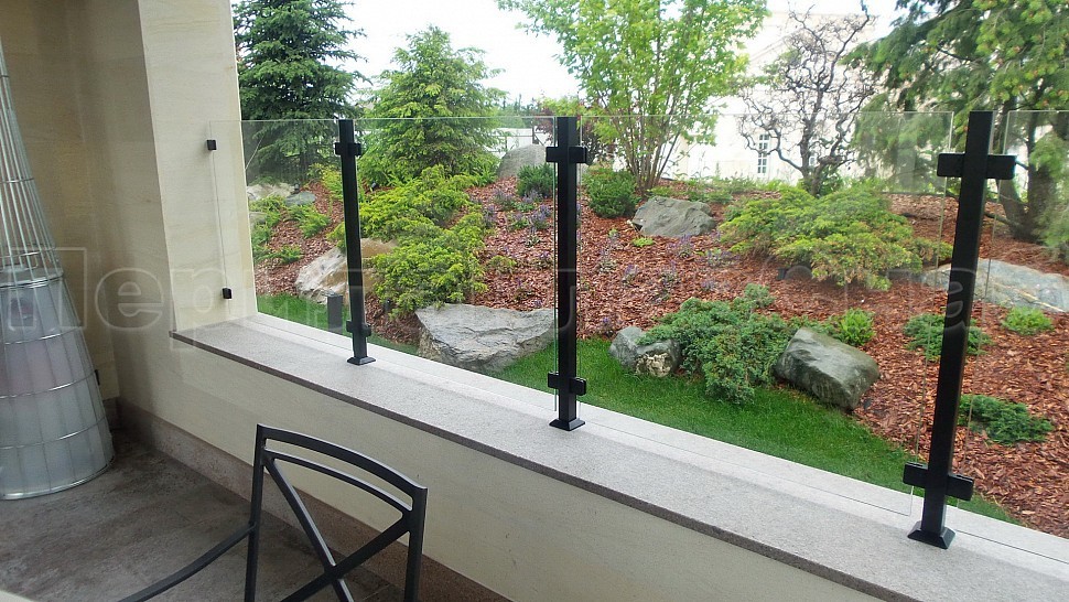 Нашими проектировщиками был проведен замер и предложен вариант конструкции, который очень подошел клиенту: восемь погонных метров ограждений со шлифованными стойками, окрашенными в черный цвет порошковым методом. Между стойками на зажимных стеклодержателях крепятся стекла толщиной 8мм, преданные закалке для большей прочности и безопасности конструкции. Так как