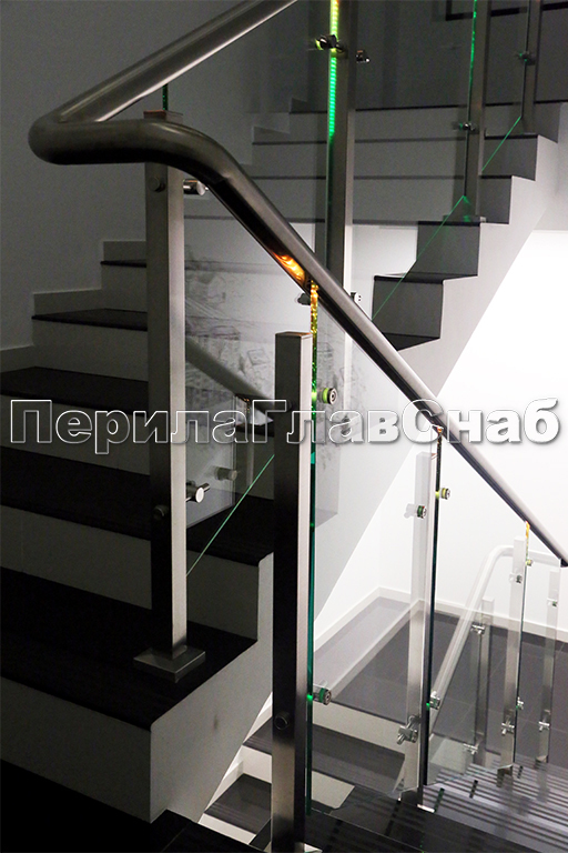 Ограждения лестницы без поручня с зажимными стеклодержателями и стойками